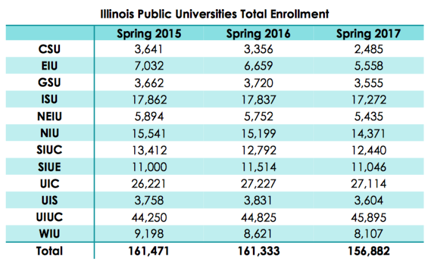 Enrollment in Illinois’ public universities and community colleges continues to decline. That’s according to figures released by the state Board of Higher Education.