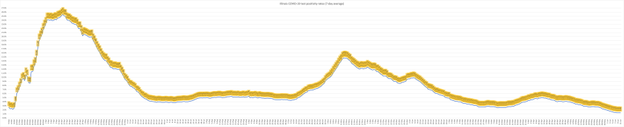 Illinois’ 7-day average COVID case positivity rate has fallen to 1% in recent days from a high of 13.2% on Nov. 13. IDPH didn’t begin reporting case positivity until late May of last year.